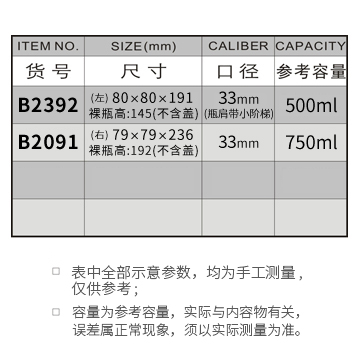 B2392-500ML/B2091-750ML