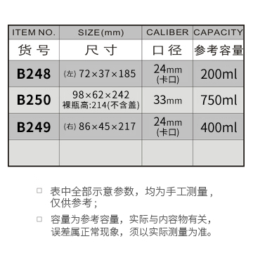 B248-200ML/B250-750ML/B249-400ML