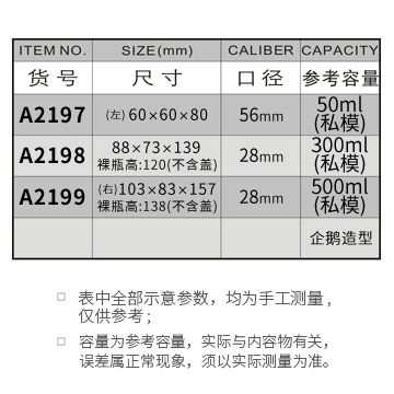 A2197-50ML/A2198-300ML/A2199-500ML