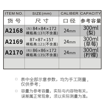 A2168-300ML(梨)/A2169-300ML(草莓)/A2170-300ML(柠檬)