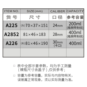 A225-200ML/A2852-400ML/A226-400ML