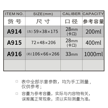A914-200ML/A915-400ML/A916-1000ML