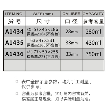 A1434-280ML/A1435-430ML/A1436-750ML